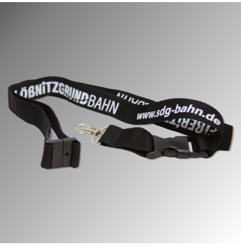 Schlüsselband der SDG Sächsischen Dampfeisenbahngesellschaft mit stabilen Karabinerhaken und Sicherheitsclip.