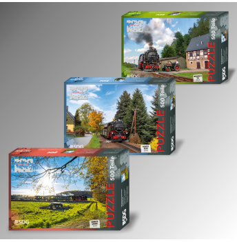 500-teiliges Ravensburger Puzzle mit Motiven der drei SDG-Bahnen.