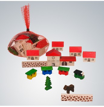 Das Säckchen enthält verschiedene Figuren in Form eines Dorfes mit Bahnhof. Ist sehr gut als Kinderspielzeug geeignet.